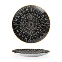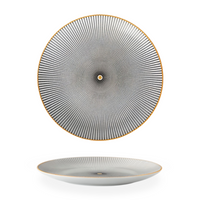 Breng stijl en karakter aan tafel met de GeoChic bordencollectie – waar modern design en tijdloze elegantie samenkomen. Elk bord is zorgvuldig vervaardigd uit hoogwaardig porselein en versierd met een opvallend zwart-wit geometrisch patroon. De verfijnde goudkleurige randen geven elke maaltijd een vleugje luxe, of het nu gaat om een dagelijks diner of een feestelijke gelegenheid.