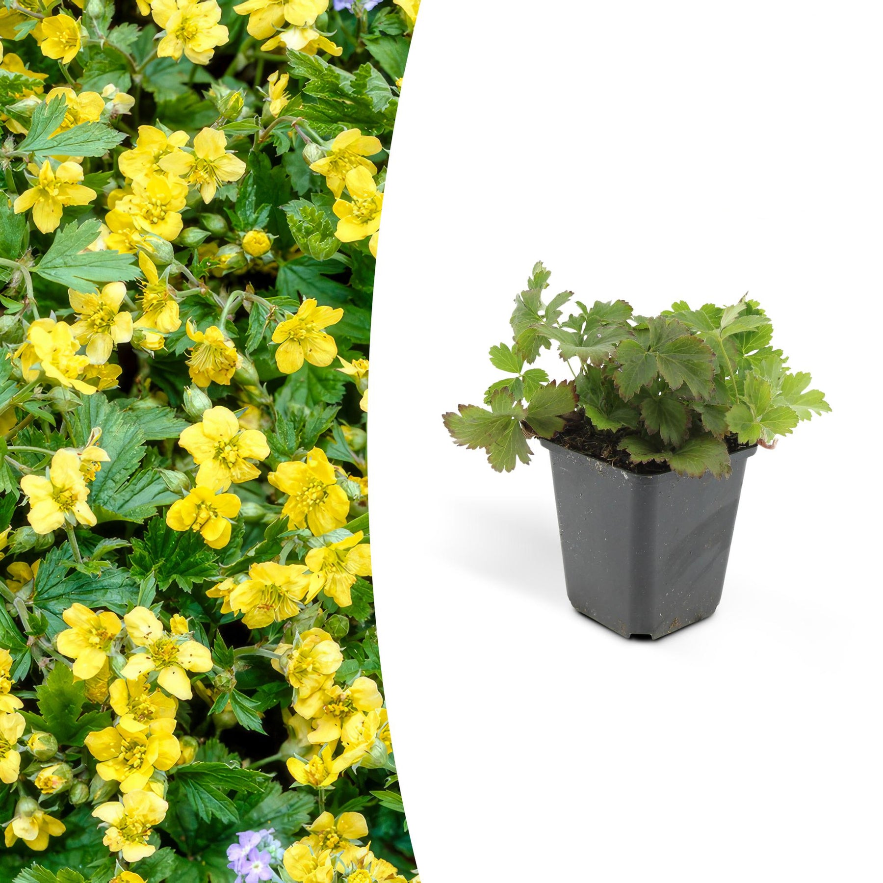 De Waldsteinia ternata is een sterke, wintergroene bodembedekker die snel een dicht tapijt van frisgroen blad vormt. In het voorjaar (april-mei) bloeit hij uitbundig met heldergele bloemen die direct kleur en leven brengen in je tuin. Deze plant is perfect geschikt voor zowel zonnige als schaduwrijke plekken, groeit op vrijwel elke grondsoort en vereist nauwelijks onderhoud. Ideaal voor borders, onder beplanting of als onderhoudsvrije erfafscheiding.